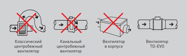 Компактная конструкция и высокая производительность вентиляторов TD-EVO делает их незаменимыми при монтаже в ограниченном пространстве, например, за подвесным потолком.