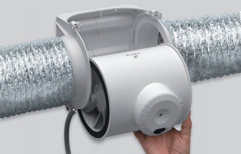 Уникальная конструкция вентилятора позволяет извлекать блок двигатель-крыльчатка без демонтажа воздуховодов, что делает обслуживание вентилятора легким и быстрым.